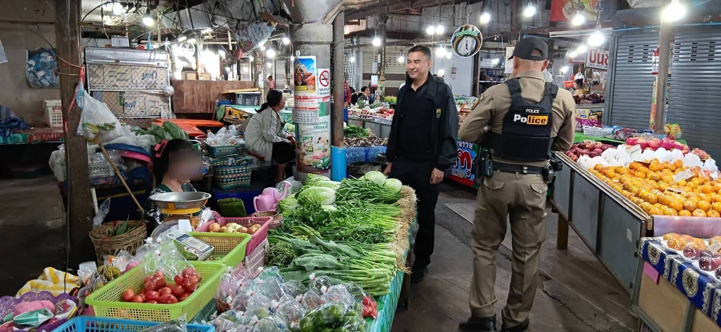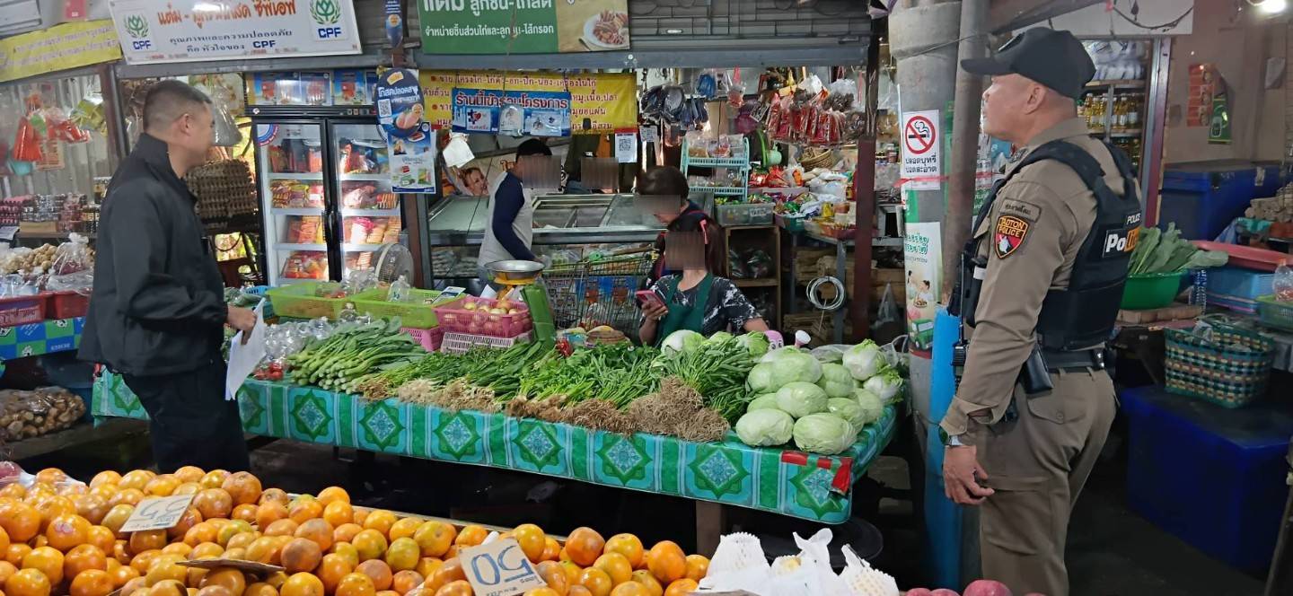 ตรวจสอบคนต่างด้าวในเขตพื้นที่รับผิดชอบ ณ ตลาดสดบ้านธาตุ